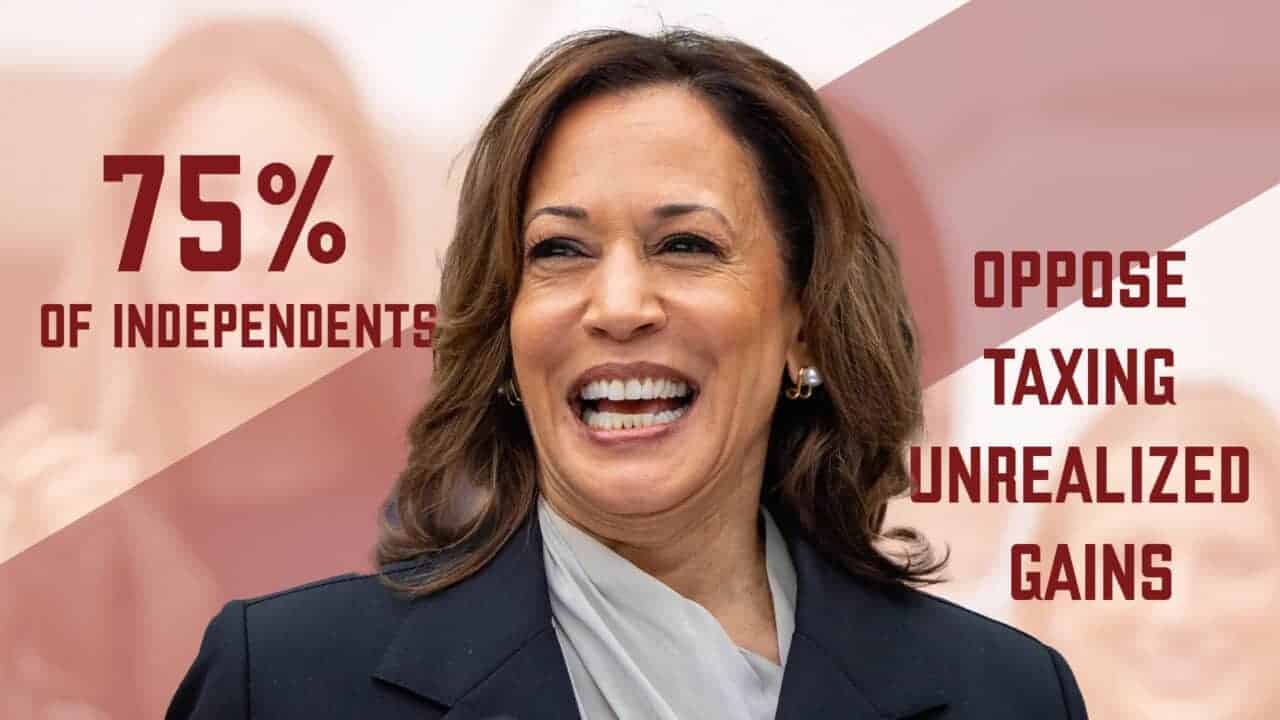 Vice President Kamala Harris wants to impose a tax on unrealized gains. But seven of 10 Democrats oppose taxing unrealized gains, as do three out of four independents, according to the most comprehensive study ever conducted on the issue.