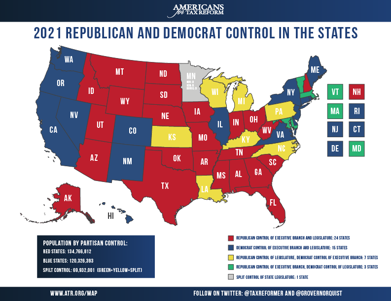 In 2021, Republicans will have full control of the legislative and executive branch in 24 states.